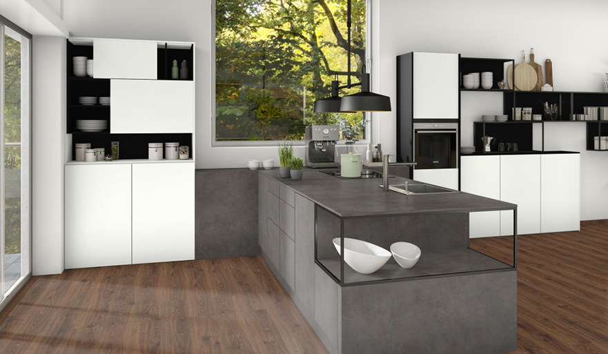 Благодаря своей особой кроющей способности декор W1000 Белый Премиум смотрится очень солидно. Его нейтральный оттенок создает гармоничный контраст с древесными декорами в естественных цветах. В данном случае декор представлен в комбинации со структурой ST38 Филвуд хвойный. Поверхности в этой структуре также отличаются высоким качеством. Вид глубоко брашированной древесины сосны, окрашенной в укрывистый белый цвет, ассоциируется с нейтральностью и естественностью. Это пользуется большой популярностью как при оформлении интерьеров помещений большой площади, так и в дизайне мебели.