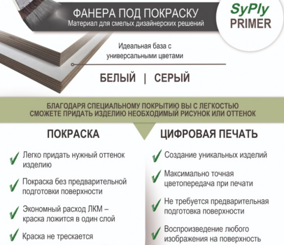 Березовая фанера, покрытая специальной защитной бумагой, позволяющей наносить краску без дополнительной подготовки поверхности.