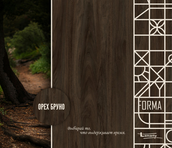 Это декор для тех, кто выбирает глубокие смыслы и вечные ценности. В его мягкой текучей текстуре заложена зрелая философия классической древесины ореха, лишённая вычурных акцентов и кричащих контрастов. Насыщенный шоколадный оттенок несет в себе солидность и внутреннее спокойствие, создавая облик интерьера, где главенствуют пропорции, формы, объем и свет.