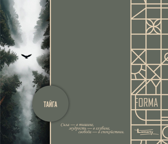 Пыльный, глубокий, приглушенный зеленый цвет тайги хранит в себе мистическую силу леса — ту самую, что молчит, но говорит с сердцем. Это цвет, наполненный древней мощью природы, светом созерцания, устойчивости, философского взгляда