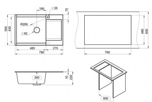 Мойка Кватро-600 Графит   600*500*200мм   GRANIT