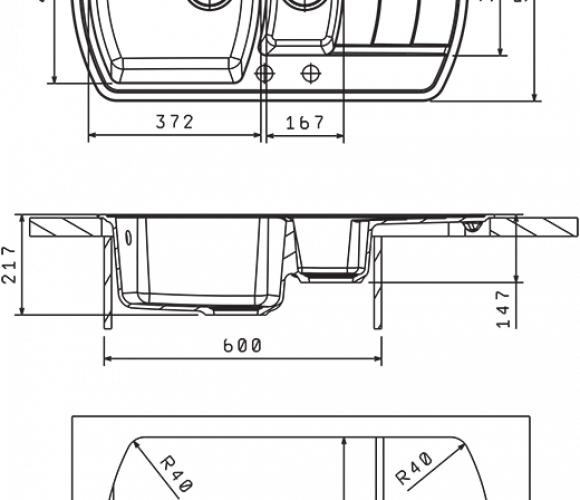 Отводная арматура для двух разноуровневых чаш с выпусками 3 ½ ” (D=90мм) и переливом |