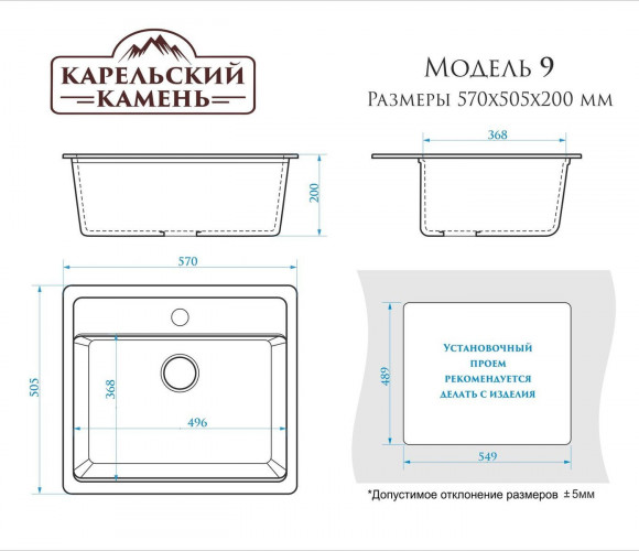 Мойка Модель 9, Квадратная 570х505х200мм, Темно-Серый Q8 Мрамор