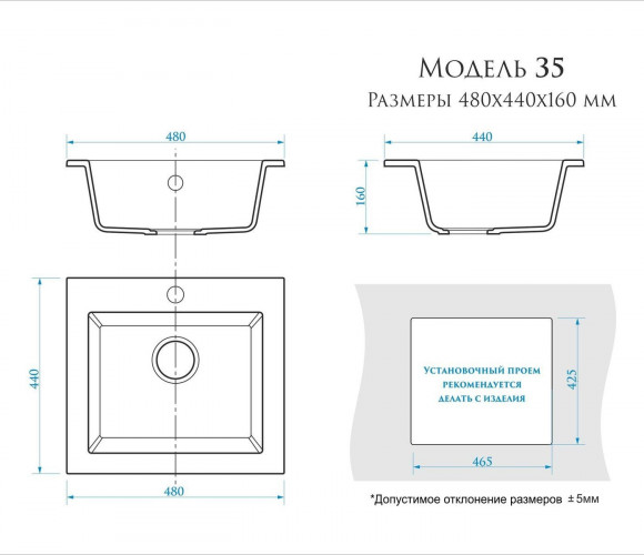 Установочный проем: 465x425