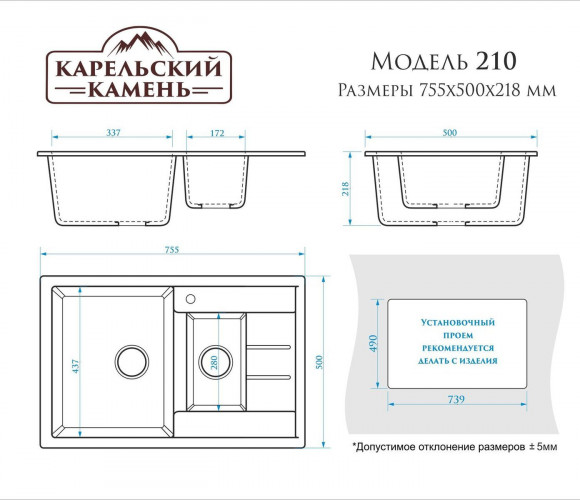 Мойка Модель 210, 755х500х218мм, Песочный Q5 Мрамор