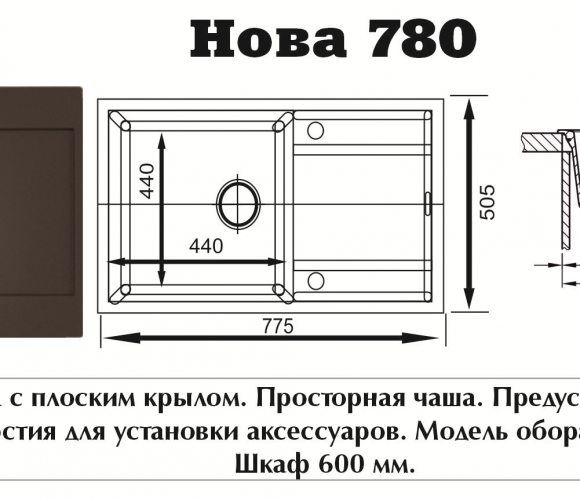 Мойка НОВА Графит 775*505*200мм GRANIT