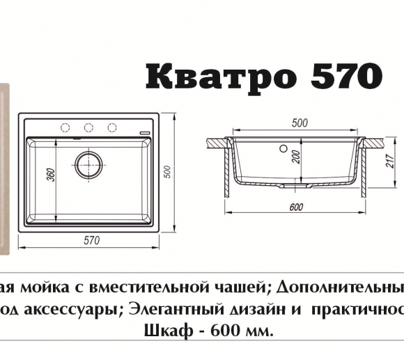Мойка Кватро-570 Сахара 570*500*200мм GRANIT