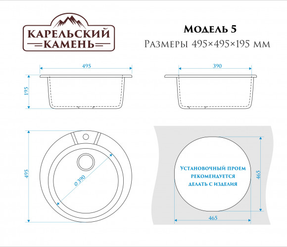 Мойка Модель 5, Круглая D495мм, Слонова кость Q6 Мрамор
