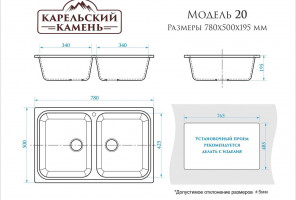 Мойка Модель 20, 780х500х195мм, Песок Q5 Мрамор