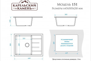Мойка Модель 151, Прямоугольная 645х505х218мм, Песочный Q5 Мрамор