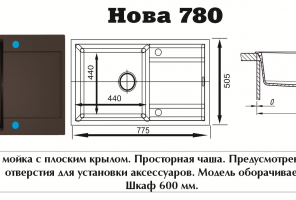 Мойка НОВА Графит    775*505*200мм   GRANIT