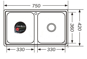 Мойка двухчашевая Premial PL 7542 E, 750*420*180/0,8мм МАТОВАЯ