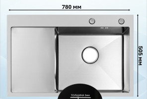 Мойка VANS левая L (780*505*200мм ) SATIN + ДОЗАТОР