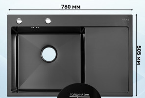 Мойка VANS левая L (780*505*200мм ) BLACK + ДОЗАТОР