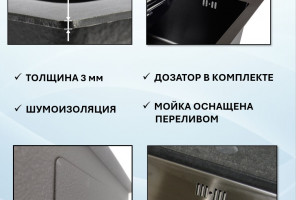 Мойка VANS (500х505х200мм, толщ.3мм), BLACK + ДОЗАТОР