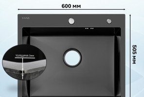 Мойка VANS (600х505х200мм, толщ.3мм), BLACK + ДОЗАТОР