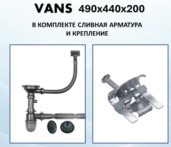 Комплектация мойка, отводная арматура, сифон, крепеж