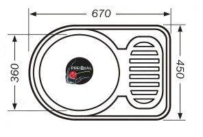 Мойка Premial PL 6745-Е, (670x450х180мм, толщ.0,8мм) , Матовая