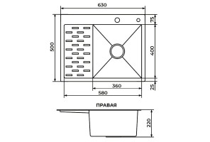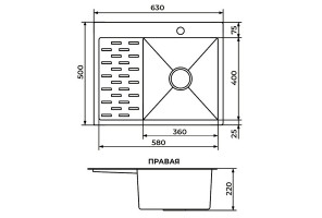 Мойка Premial PR 6350 Eyrie, правая (630*500*220мм, толщ. 3мм), Сталь шлифованная