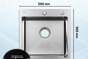 Мойка VANS (500х505х200мм, толщ.3мм), SATIN + ДОЗАТОР