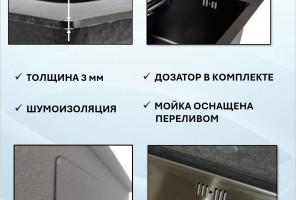 Мойка VANS (500х505х200мм, толщ.3мм), BLACK + ДОЗАТОР