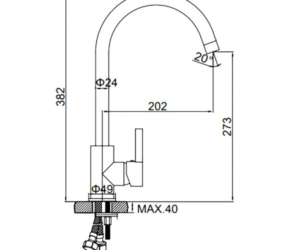 Однорычажный смеситель для кухни LEDEME с высоким поворотным изливом. Выполнен из высококачественной латуни класса "А". Монтаж на гайке.