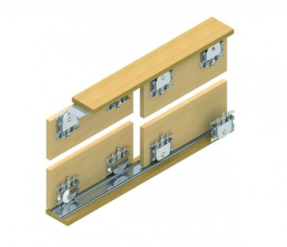 Механизм LC 75 AY Lucido используется для раздвижных дверей весом до 75 кг. В комплект входит универсальный ролик(2 шт) и стопор (2 шт). Ролики универсальные (без фрезеровки фасада)- монтируются как на низ, так и на верх двери. Монтаж на двери из ДСП. На 1 дверь нужно 2 кт. Дополнительно необходимо приобретать рельс универсальный. Рельс сдвоенный, универсальный, накладной. Ставиться как на верх, так и на низ.