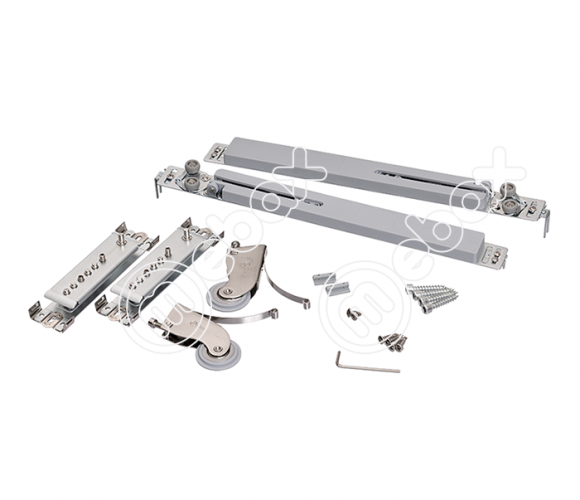 Комплектация доводчика Мебакс: 2 направляющих ролика, 2 активатора и 2 каретки со встроенной системой демпфирования и доводки. Инструкция по установке прилагается. Доводчик можно устанавливать как на новую, так и уже эксплуатируемую дверь.