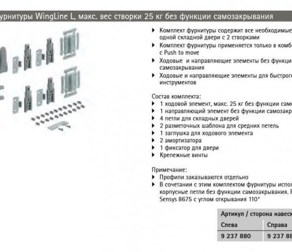 Комплект фурнитуры WingLine L, макс. вес створки 25 кг