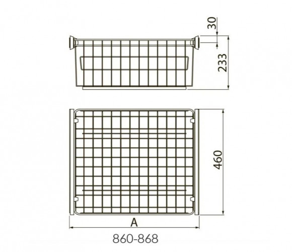 Благодаря телескопическим креплениям, ширина корзины при монтаже регулируется в диапазоне 860-868 мм.