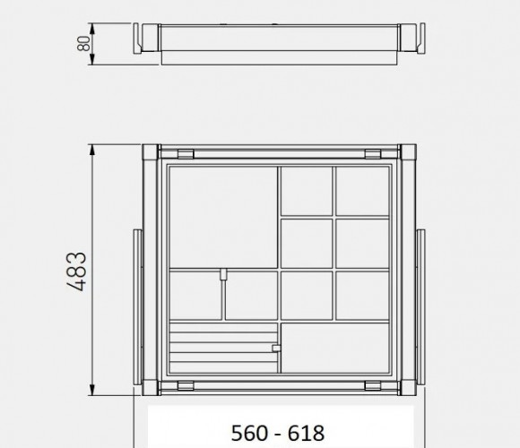 Корзина с органайзером ELITE WG-PRZEG60-60-A, в модуль 600 мм, антрацит - удобное гардеробное наполнение, предназначенное для хранения аксессуаров, таких как украшения, заколки, часы, ремни, запонки и прочие мелочи. Рабочая поверхность корзины разделена на секции. Корзина предназначена для модуля с шириной фасада 600 мм, вид монтажа направляющих - нижний (скрытый). Ширина корзины регулируется в диапазоне 560 - 618 мм. КОМПЛЕКТАЦИЯ Корзина - 1 шт. Шариковые направляющие 450 мм (левая и правая) с доводчиком - 1 комплект. Набор креплений для монтажа - 1 комплект. ПРЕИМУЩЕСТВА Благодаря доводчику, корзина плавно и бесшумно задвигается в шкаф. Механизм полного выдвижения обеспечивает легкий доступ к любой вещи в корзине.