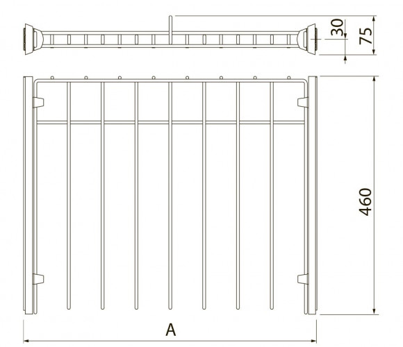 Ширина установки вешалки регулируется в диапазоне 660 - 668 мм. Количество перекладин: 9 шт.