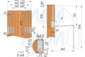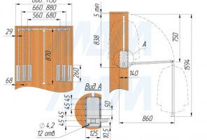 Пантограф (850x1300х830) алюминий RTU-03-B