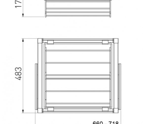 Ширина установки полки регулируется в диапазоне 660 - 718 мм.