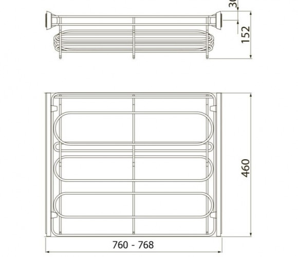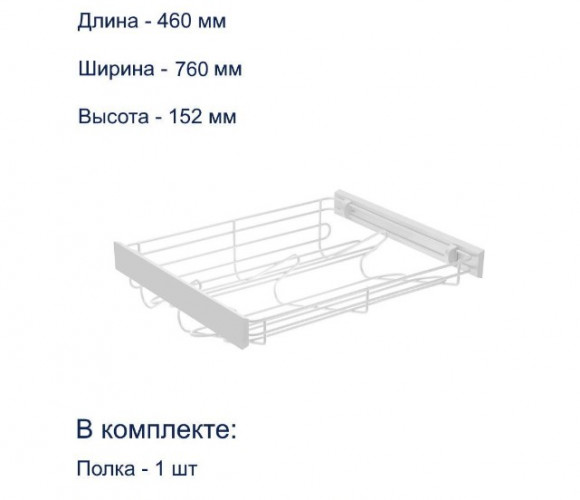 Ширина установки полки регулируется в диапазоне 760 - 768 мм.