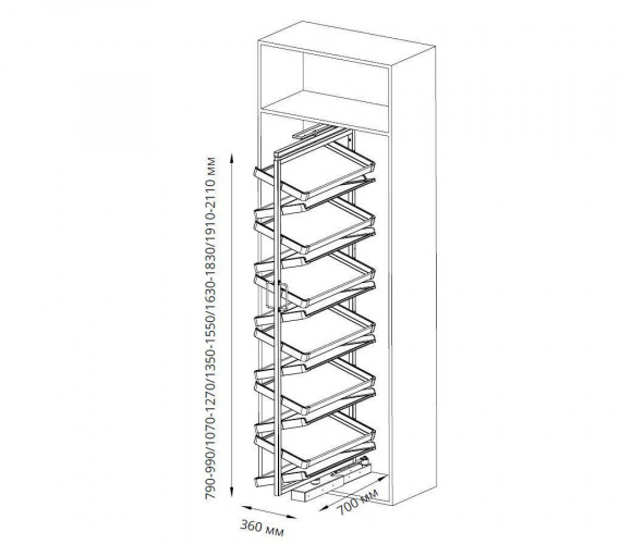 Полка Starax для обуви, поворотная шир. 800мм (700х360х1350-1550), антрацит S-6833-A