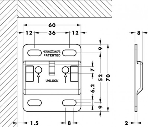 Площадка для крепления к стене подвески каркаса 807, 60х70мм, CAMAR 897.AS.Z1.60.70