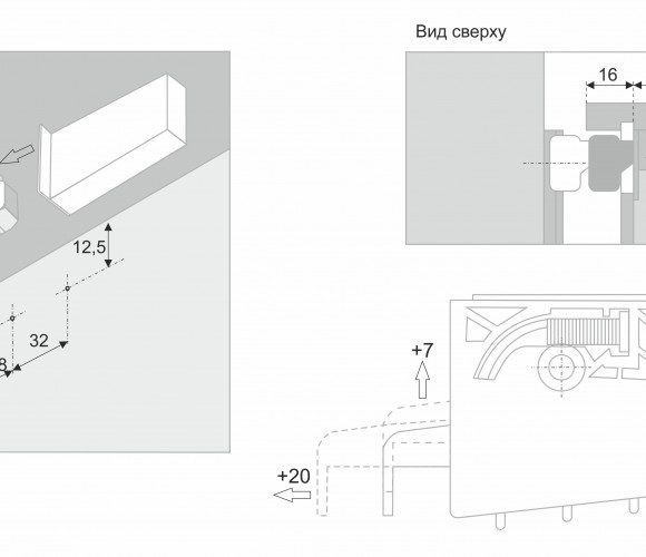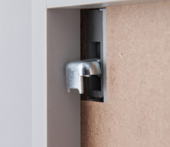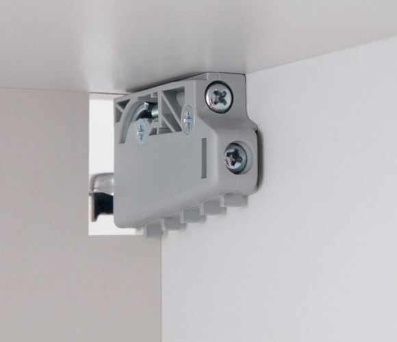 СН04 — классический крепёжный элемент для верхних баз мебели. Навес выдерживает нагрузку на пару до 80 кг и допускает возможность регулировки по вертикали +7 мм и по горизонтали от плоскости стены +20 мм. Модель монтируется внутрь мебельного модуля, в задней стенке которого делается отверстие для крючка. Крючок фиксируется к стене с помощью ответной планки СНН01 (продаётся отдельно). Для внутренней эстетики корпуса навес и вырез в задней стенке закрывается декоративной заглушкой, которая поставляется в комплекте.