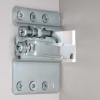 Модель допускает два вида монтажа — вкручивание в предустановленную футорку (12 футорок идут в комплекте) или в пласть. Оба вида монтажа одинаково надёжные и выбираются исходя из предпочтений мебельщиков.