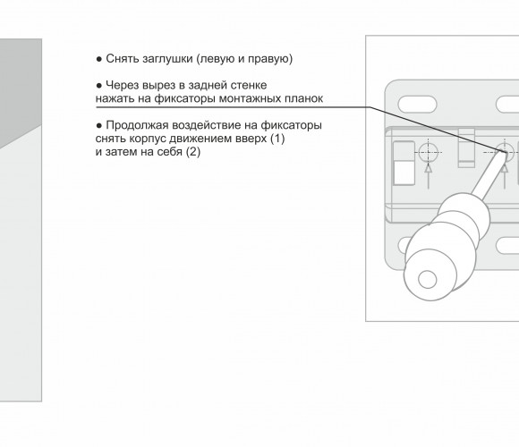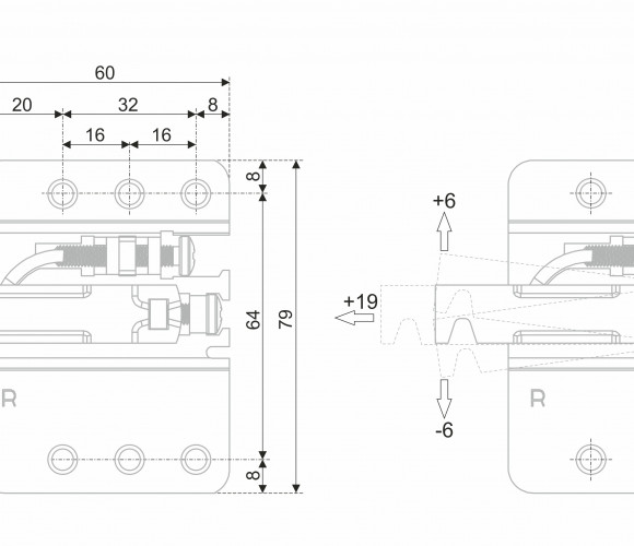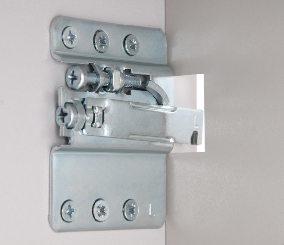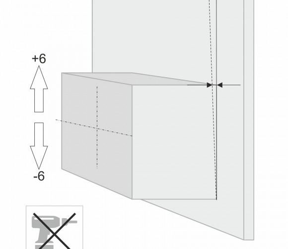 Навес TITAN позволяет отрегулировать положение мебельного модуля по вертикали +/- 6 мм и по горизонтали от плоскости стены +19 мм. После монтажа корпус навеса и отверстие в задней стенке закрываются заглушками.