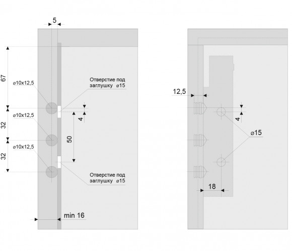 Невидимый навес STELS СН11 для верхних баз мебели, выдерживающий нагрузки на пару до 135 кг. Модель располагается на смещённой внутрь задней стенке мебельного корпуса, врезается в отверстия в боковинах и крепится с помощью ответной планки CHH01, которая приобретается отдельно. Положение навесов легко отрегулировать по вертикали +/- 9 мм и по горизонтали от плоскости стены + 11 мм через два заранее подготовленных отверстия в задней стенке короба. Для эстетики отверстия закрываются круглыми шляпками нейтрального белого цвета.