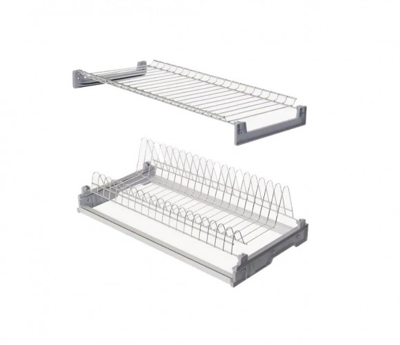 Комплектующие: держатель для посудосушителя, держатель посудосушителя для поддона, рамка телескопическая, поддоны: пластиковый.