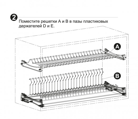Конструкция LORA SU06 позволяет полностью интегрировать сушку с верхней базой мебели и отрегулировать её по глубине в мебельном коробе. Пластиковые держатели нижнего яруса и алюминиевая трубка имеют специальный паз для установки задней стенки мебельного короба. Полезное пространство под сушку по глубине варьируется в диапазоне от 320 до 370 мм. Выдвижной элемент в составе пластиковых держателей нижнего яруса даёт возможность отрегулировать положение сушки до задней стенки в пределах 50 мм.