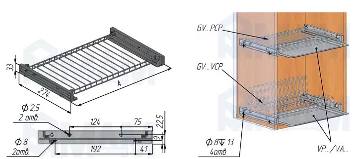 Посудосушитель ROUND для чашек без рамки 900 мм. хром