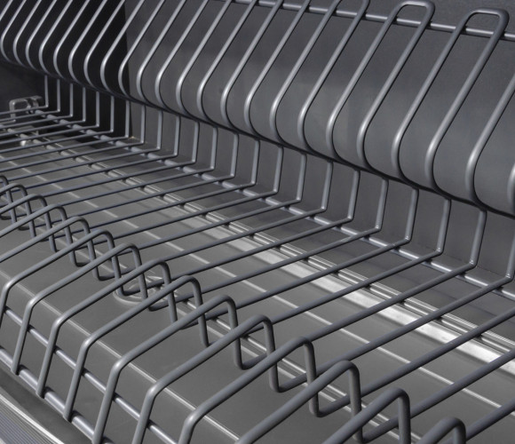 Особая форма прутков нижнего уровня позволяет по-настоящему удобно расположить в пространстве сушки большое количество посуды любого диаметра – от крошечных кофейных блюдец до габаритных сервировочных тарелок. При этом необязательно размещать посуду по центру, удобно ставить её и в дальние, и в ближние сектора сушки.