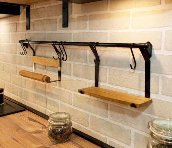 Держатель полотенец, черный/дуб LANDSBY