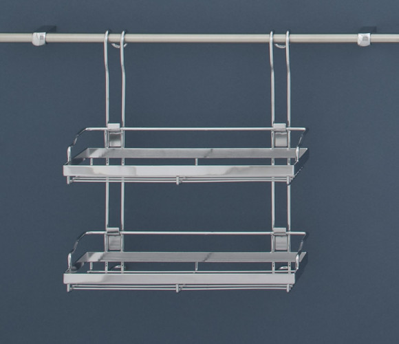 Компактная двухъярусная полка для специй. Нижняя и верхняя полки одинаковой ширины. Материал: латунь.