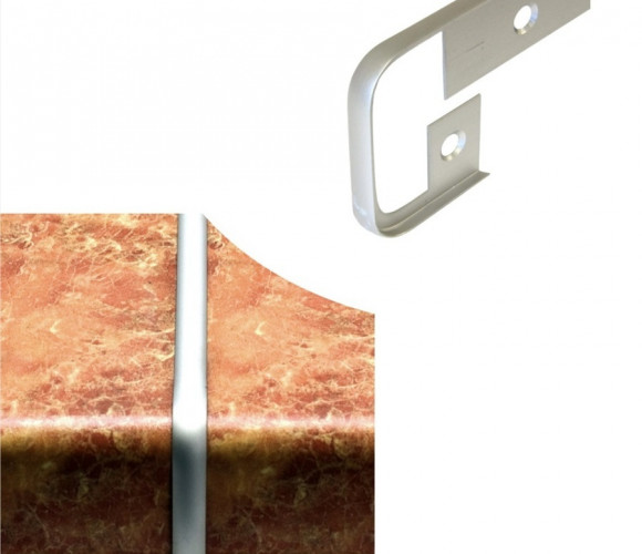 Планка для оформления стыка торец к торцу столешиц толщиной 38 мм и радиусом скругления - 9мм Сторона - универсальная Цвет - Серебро Материал - алюминий