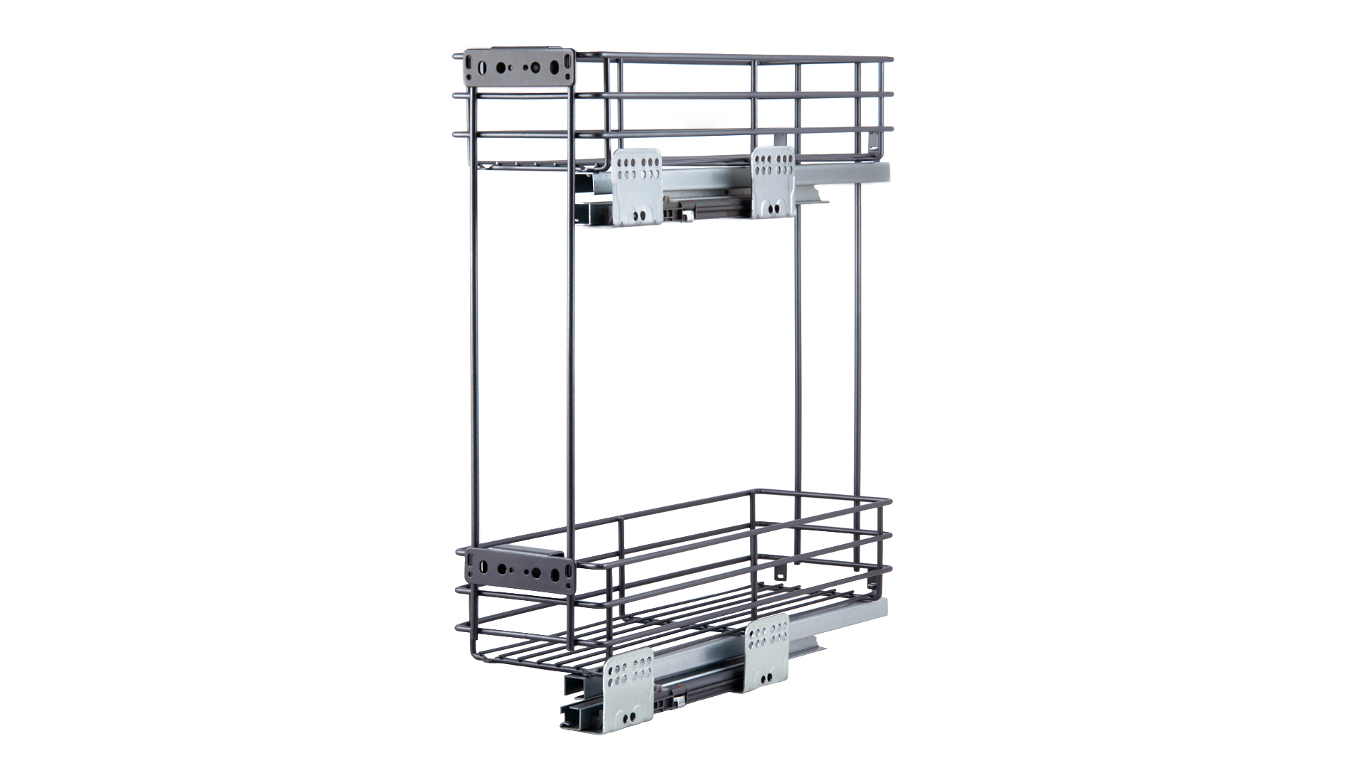 Bellissimo функционирует на направляющих скрытого монтажа полного выдвижения с амортизацией. Модель обеспечит удобный полный доступ к продуктам и жидкостям. Ассортимент Bellissimo включает четыре варианта бутылочниц для нижних баз кухонных гарнитуров: для модулей размером 150 мм и 200 мм с левым или правым расположением направляющих.