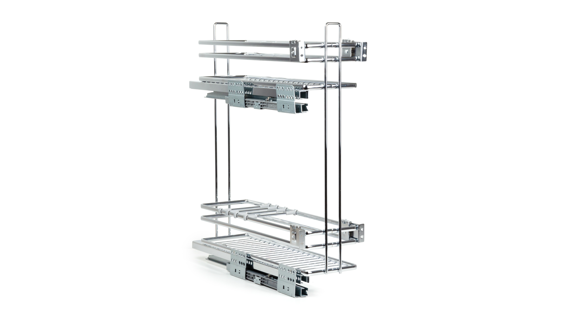 Надёжные направляющие полного выдвижения с амортизацией и синхронизацией обеспечат стабильное, плавное выдвижение. Брендированные декоративные накладки на направляющие создадут стильный и лаконичный вид.